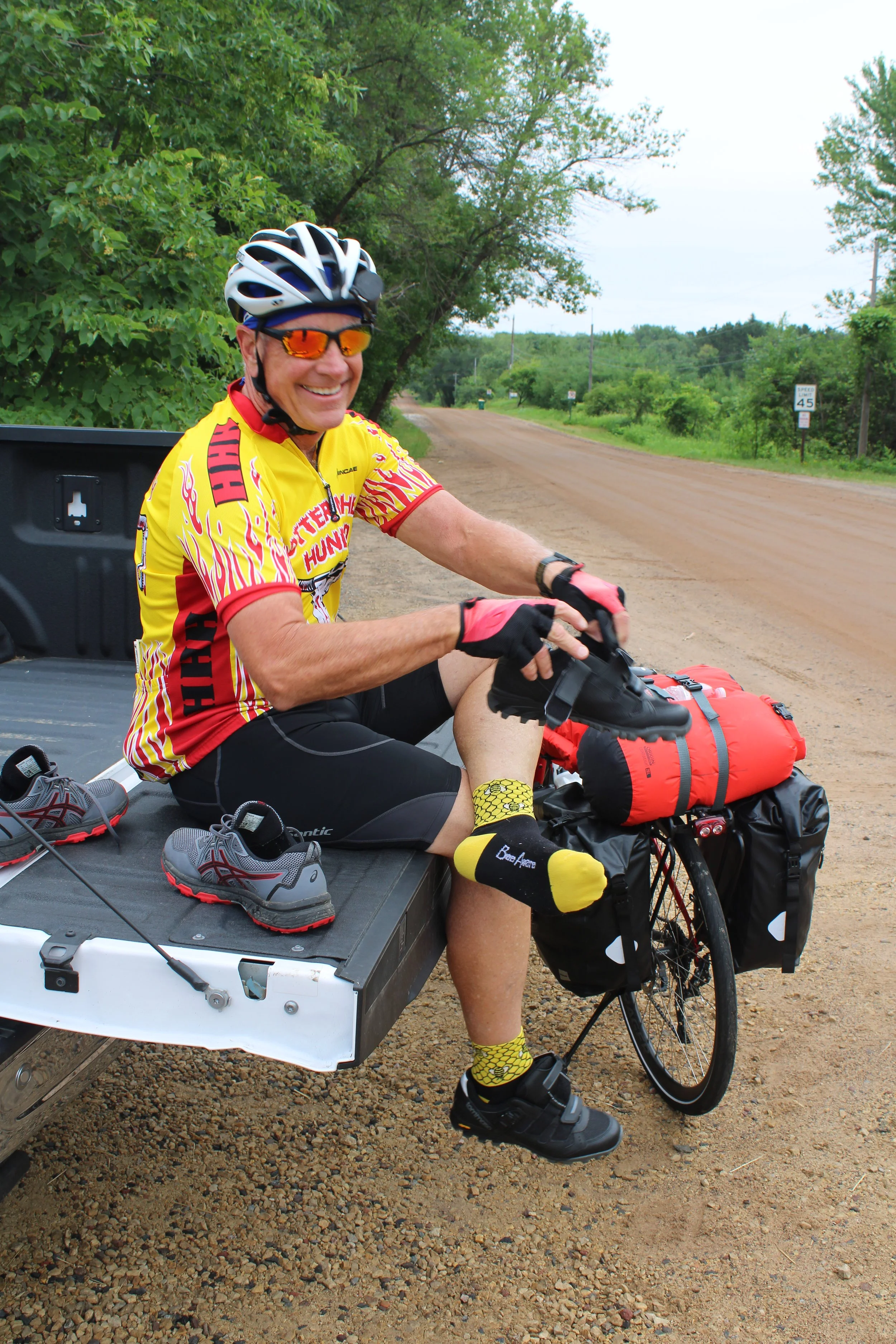 Larry made it to Cumberland, Wisconsin, after approximately 85 miles today. He sounded cheerful on the phone. That’s one of us.