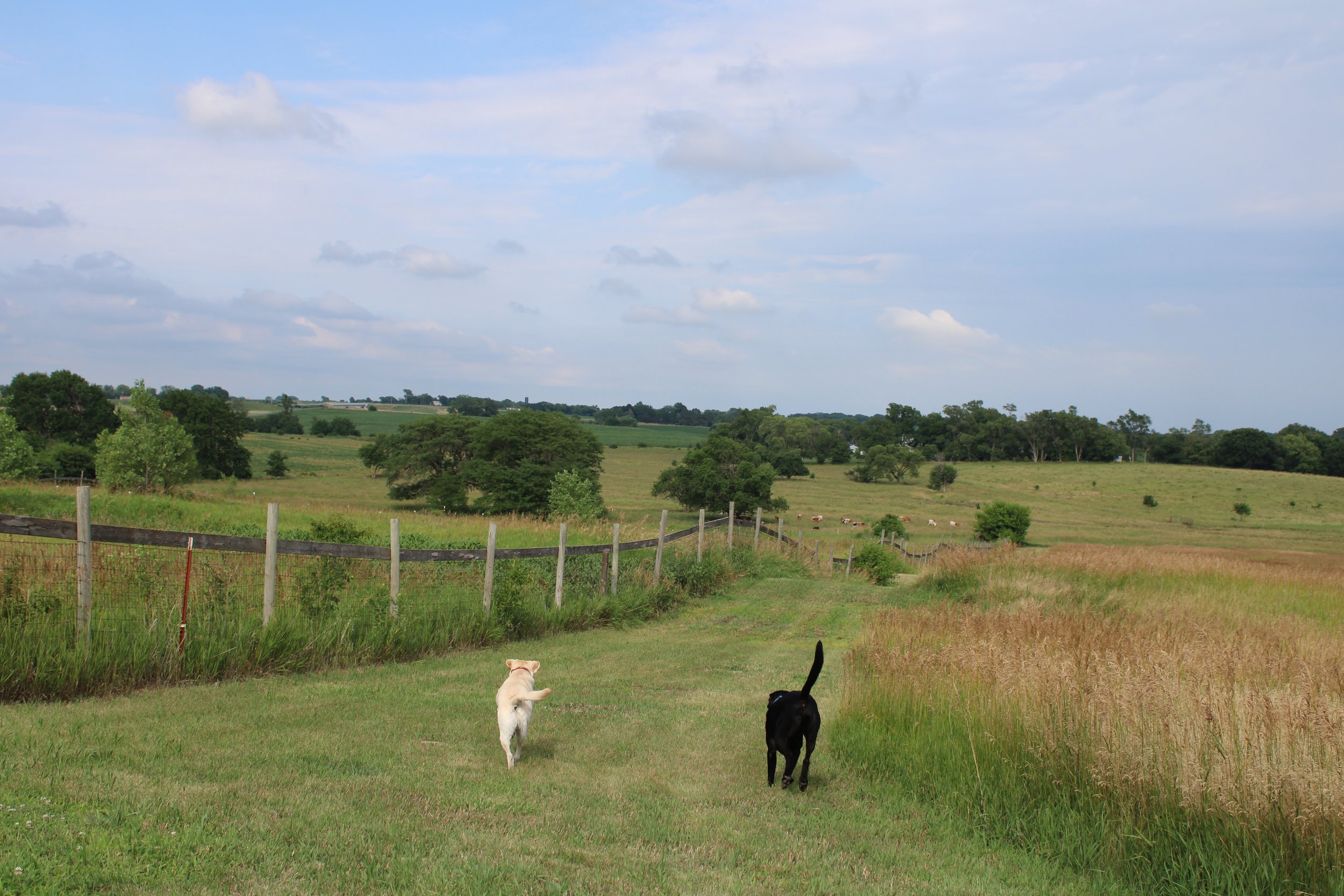 I made it to my tiny house Airbnb south of Lincoln, Nebraska. It’s beautiful here. After meeting the host, the dogs and I ventured down the pasture to chase rabbits and look at a herd of Longhorns. I really wish I had a big plot of land so the dogs could run.