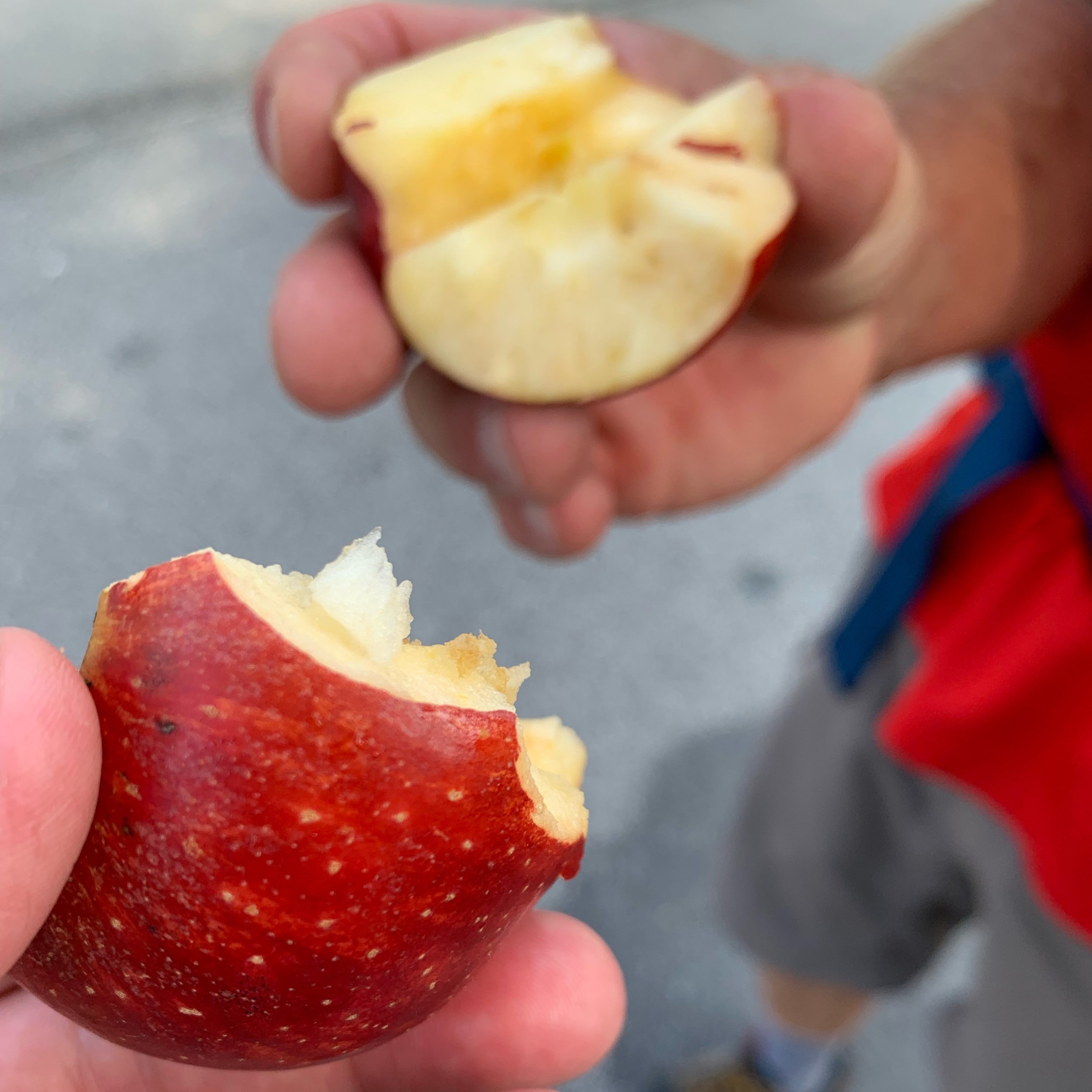 Just then a juicy red apple released from overhead, rolled across the street and in front of Larry. He picked it up. Took out his pocket knife and said. “Ask and you shall receive.”